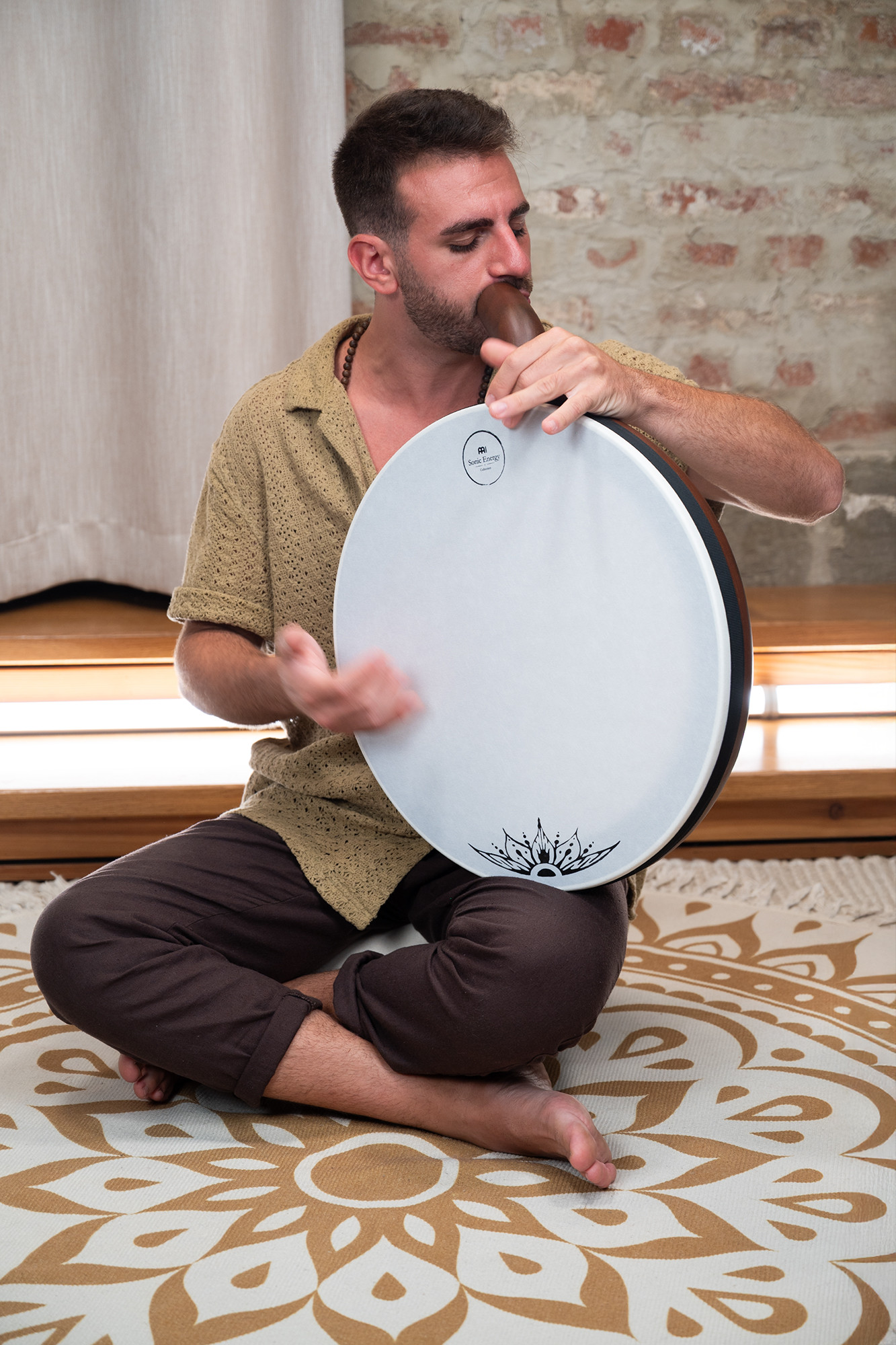 One instrument, two worlds: The Meinl Sonic Energy Didgeridrum combines the deep, earthy drone of a didgeridoo with the rhythmic pulse of a frame drum. Thanks to its ergonomically curved mouthpiece, it can be played either separately as a didgeridoo or frame drum – or both at the same time. The 17.5" synthetic drumhead delivers rich, resonant beats, while the body produces the characteristic, vibrating tones of the didgeridoo. This unique hybrid opens up new possibilities for sound healing, percussion ensembles, or experimental solo performances. The Didgeridrum comes with a soft bag and mallet included – ready for creative sound journeys and inspiring performances.