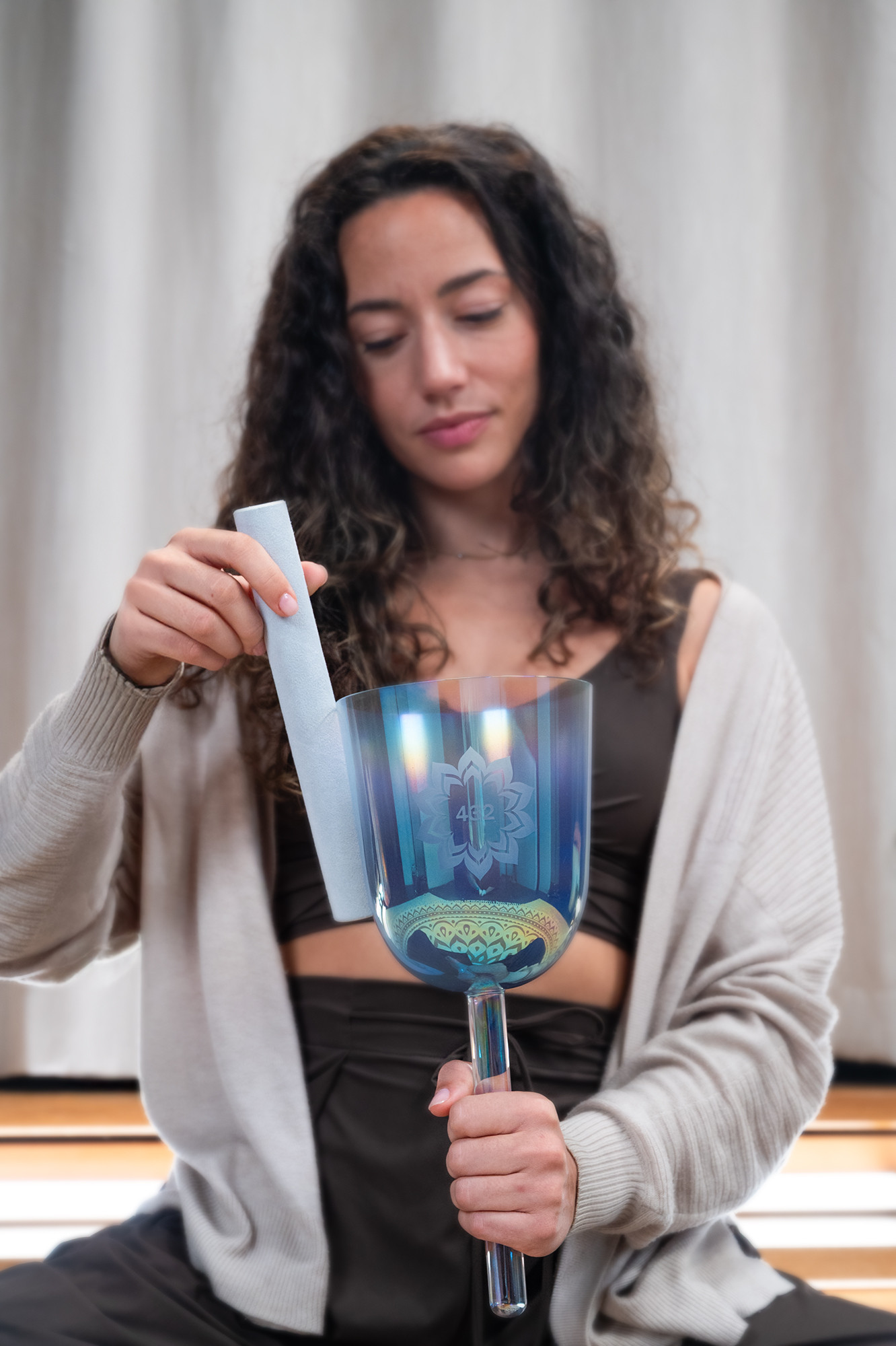 The Meinl Sonic Energy Crystal Singing Bowl Suede Mallet is perfect for playing Essence crystal bowls or similar bowls and chalices with a smooth rim. Its design allows you to produce celestial sounds with gentle strikes or by gently circling the rim of the bowl. Ideal for enhancing your sound practice, this mallet helps you achieve heavenly tones effortlessly.